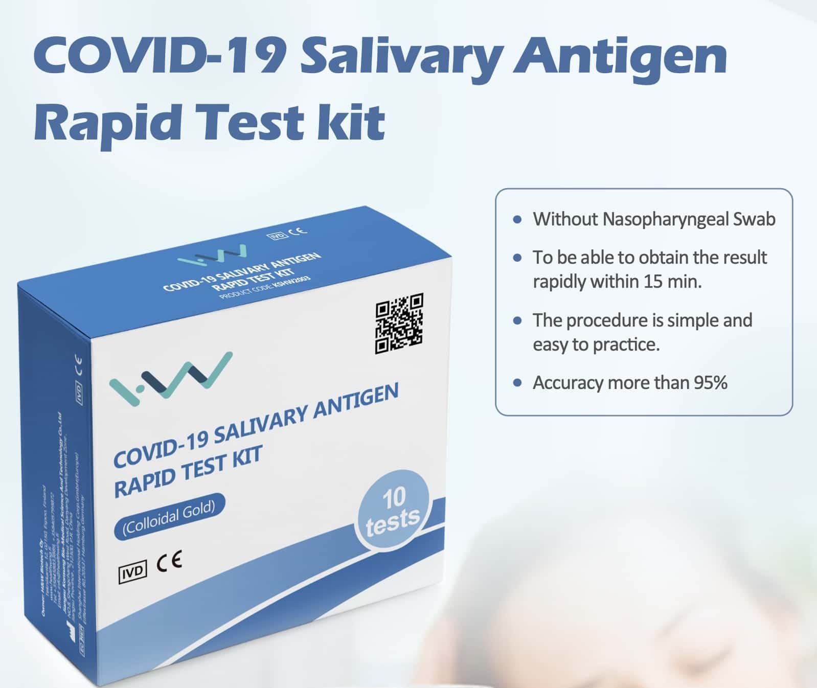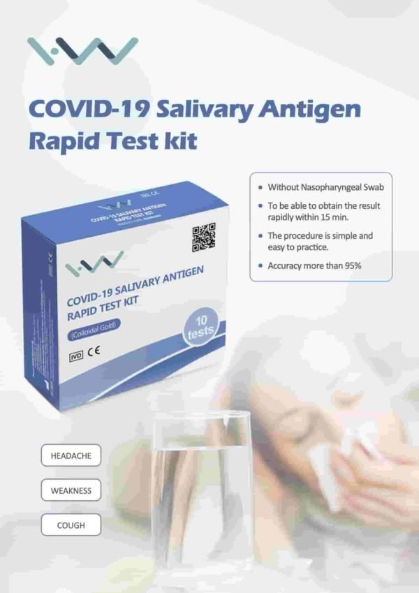COVID-19 Antigen Rapid Test kit is an immunochromatographic assay for rapid, qualitative detection of severe acute respiratory syndrome coronavirus (SARS-CoV-2) Antigen from the saliva specimen. The friendly operation processes: Result is available in 15 minutes, no instrument needed. Excellent Performance Characteristics: Sensitivity 96.30% Specificity 99.34% Accuracy 99.03%
