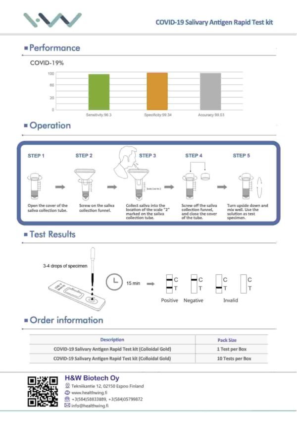 H&W COVID-19 Salivary Antigen Rapid Test Kit for Professional Use (1 test/pack)
