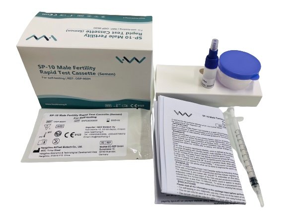 The SP-10 Male Fertility Rapid Test Cassette is a rapid chromatographic immunoassay for in vitro qualitative detection of Acrosomal Protein SP-10 found on sperms to estimate of sperm concentration in human semen above or below 15 million/mL. Sperm concentration can be used for assistant diagnosis and curative effect observation of male infertility, and provide guidance for reproductive planning of the eligible couples.